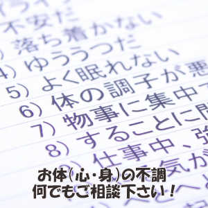 急性外傷から慢性症状(不定愁訴)などさまざまな症状の方が市外・県外からもご来院頂いております。鍼・灸・整体(矯正)など何をやっても良くならない方は、まずはお気軽にご相談ください。